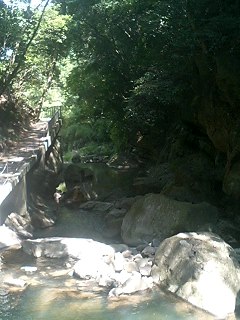 山の中で川が流れ、木漏れ日の中少し川に足をつけて遊ぶなんて、